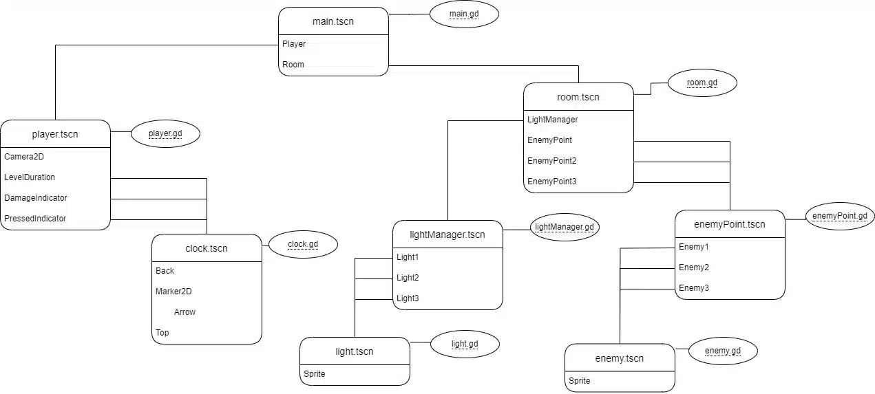 Lo primero que hice fue descargar la última versión Godot 4 y ponerme a estructurar las clases que tenía que hacer: